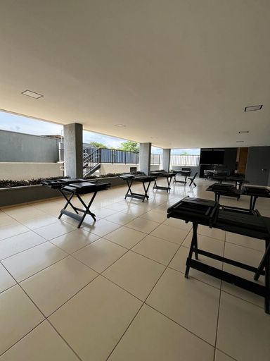 O condomínio oferece uma área de lazer com piscina, churrasqueira, salão de festas, espaço fitness e quadra poliesportiva.